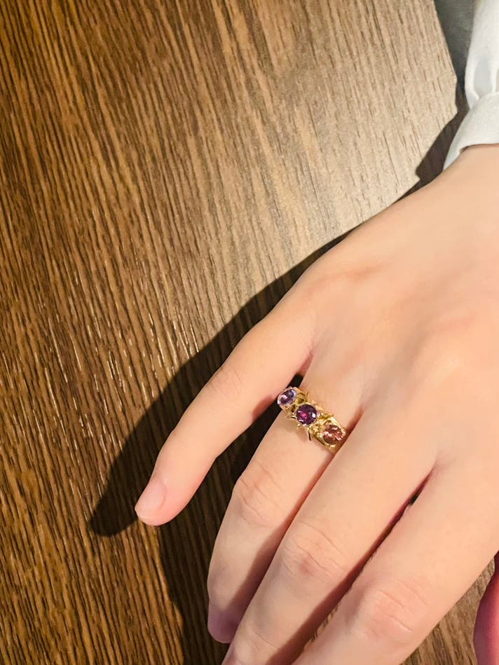 光によって色が変化する3種類の宝石が織りなす世界を、ぜひ手に取って感じていただけたら嬉しいです。