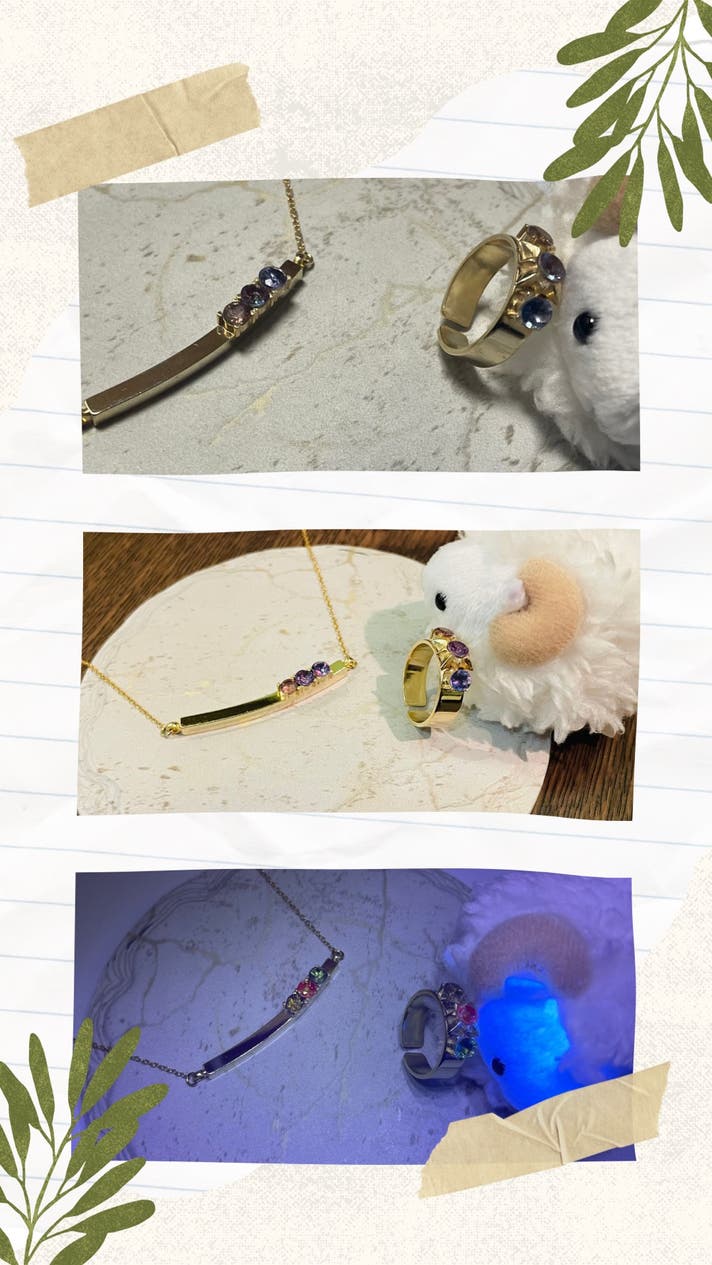 - 【複数の光の変化を1つに】3種類の宝石を1つのネックレス/リングに添えた特別なジュエリー
