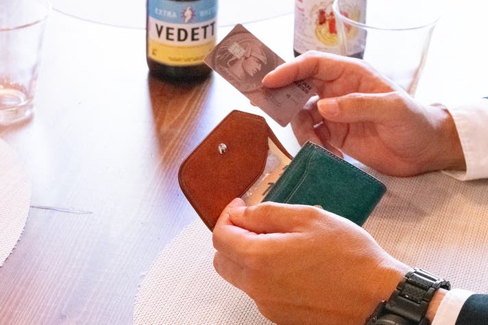 A. 外ポケットに1枚、内ポケット2箇所にそれぞれ2枚(または名刺3枚)ずつ、合計5〜7枚程度収納可能です。