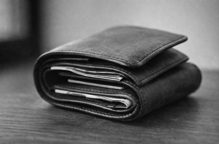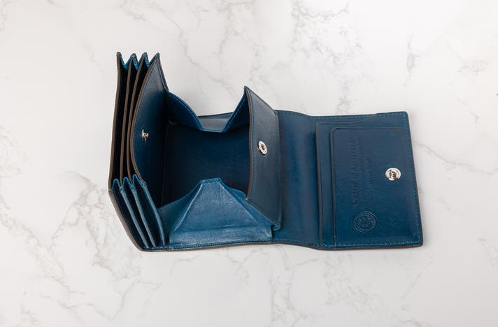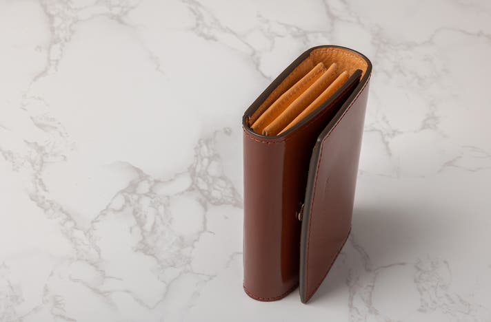 三つ折り財布は、使い込むほどに角が潰れたり、厚みが膨らんだり、輪郭がぼやけやすい。