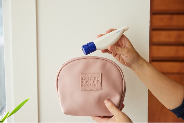 A :画像のようにノイストップのロゴが手前側に見えるように掴んでふいてください。