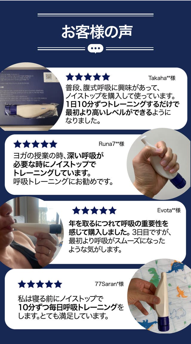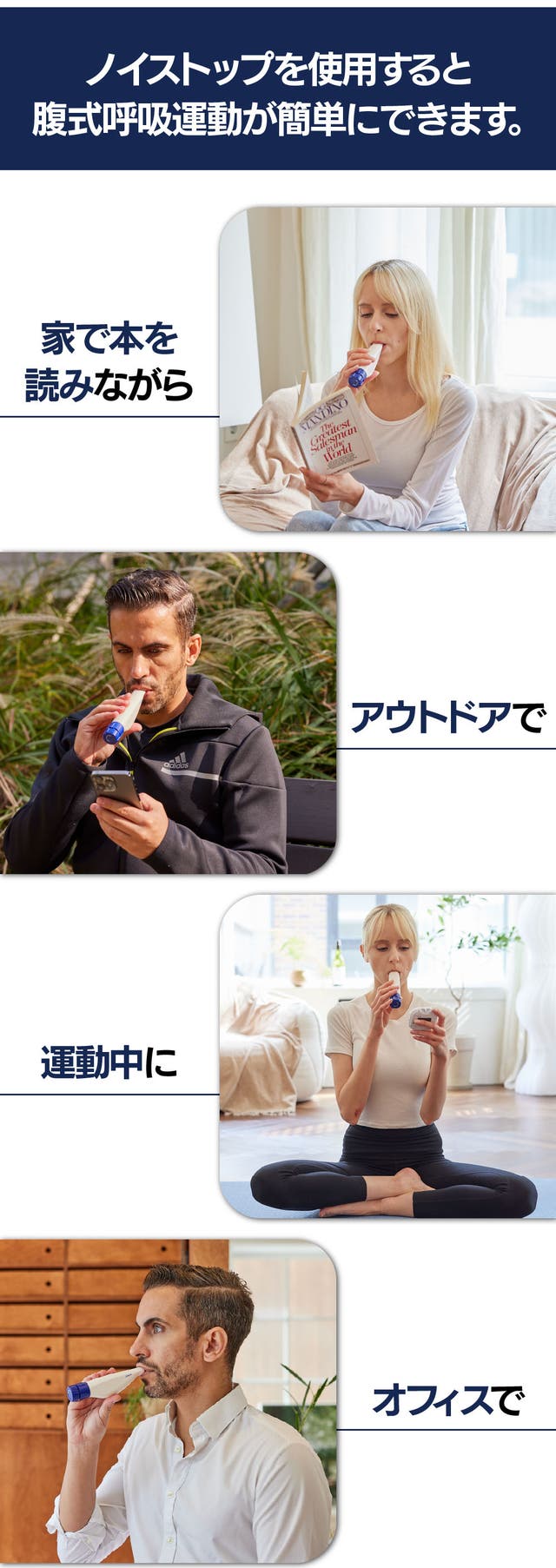 忙しくてなかなか運動に行けない方や家事や仕事の合間にトレーニングをしたい方、 自宅で気軽に腹式呼吸の練習ができるNOISTOPがオススメです!