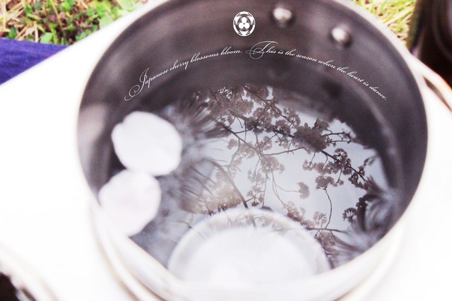 チロリに浮かぶ桜の花びら。 桜酒で「至福のとき」