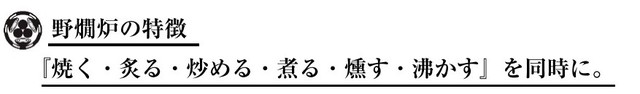 野燗炉のプロダクトの完成度は、昔の日本人が利用し改善を続けたことにより、現代でも通用する「完成されたデザインと機能」を有しております。