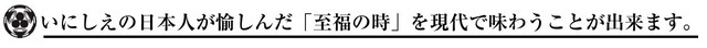 昔の日本人が味わった「至福のとき」は、ストレス溢れる現代においても最高の「至福のとき」を味わうことが出来ます。