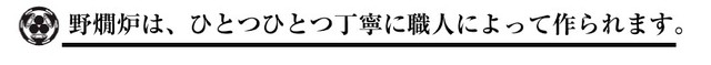 野燗炉は、ひとつひとつ熟練の職人の手によって丁寧に作られます。野燗炉の構造は、機械だけの工程では作ることができないほど繊細です。 熟練の職人でも仕上げまでかなりの制作時間が必要になります。