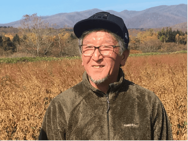 ▼ボーロで使っている大豆を栽培している、有限会社 秀明ナチュラルファーム 冨樫さん。