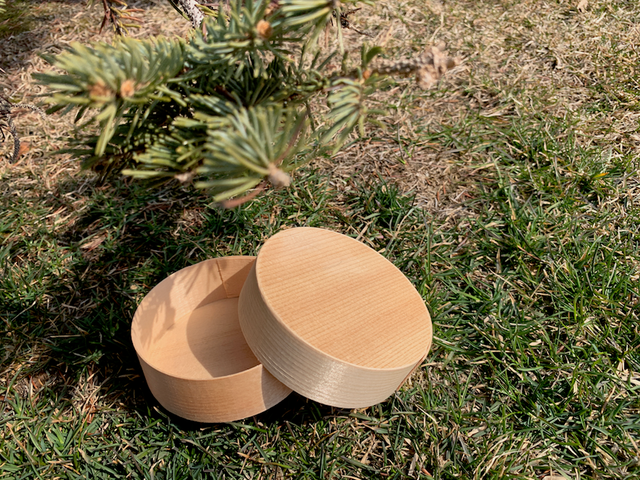 北海道産エゾマツをうす〜くスライスした経木の箱。