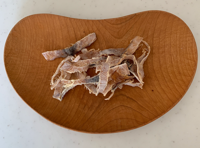 日本海で西田さんが獲ったスルメイカを使った、あたりめです。