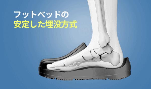 5-6mmの埋没方式を採用して足の甲を低くし視覚的にシャープにし、足を安定的にサポート。