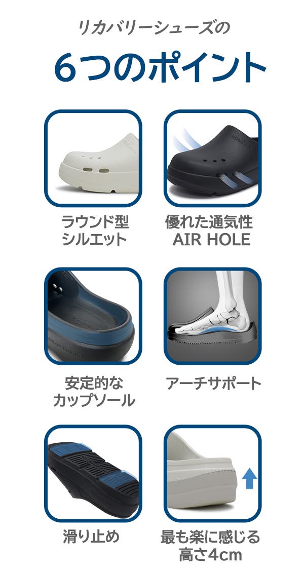 メーカーからサンプルを受け取り試し履きしたところ、足がとにかく楽でした。 旅行やキャンプ、休暇先でも!ふかふかとした、まるでおもちのような感触を足裏全体に感じられるリカバリーシューズ、ミュリーを皆様におすすめします!EVA素材の特性上、直射日光や高温下で保管しないよう十分ご注意ください。(※収縮しサイズダウンする恐れがあります。)