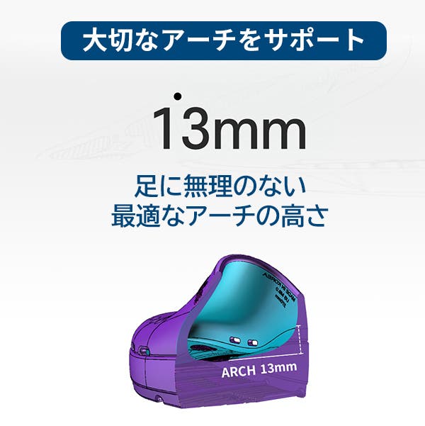 - アーチサポート機能付き!足に無理のない最適な高さ“13mm”で、アーチをしっかりサポート