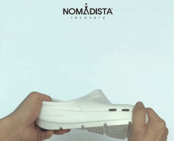 ただ柔らかいだけのシューズは誰でも作れます。NOMADISTAは、衝撃吸収剤を添加した材料で作られます。 衝撃吸収剤付きのリカバリーシューズは、衝撃吸収素材を使用しています。