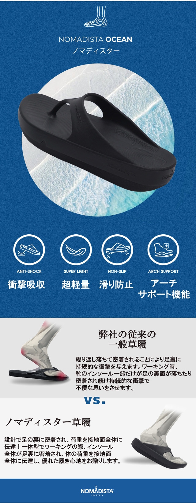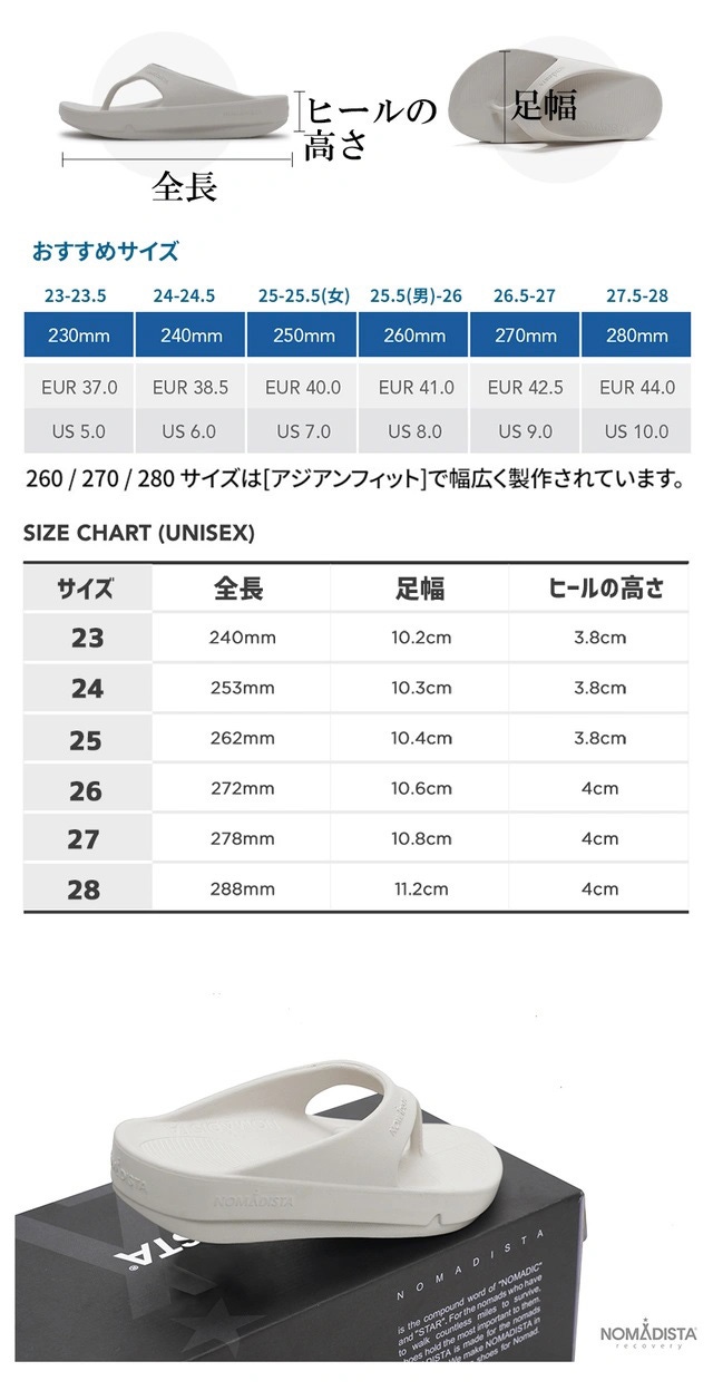 10年履いても飽きないシンプルなデザイン、10年履いても壊れない丈夫なデザイン ! 一体型デザインです。ノマディスターのサンダルは こだわってしっかりと作った自社工場生産製品で 高級EVA原料と自社の工場で高い技術力と製品のクォリティーを随時確認するシステムで生産される自社開発のシューズです。