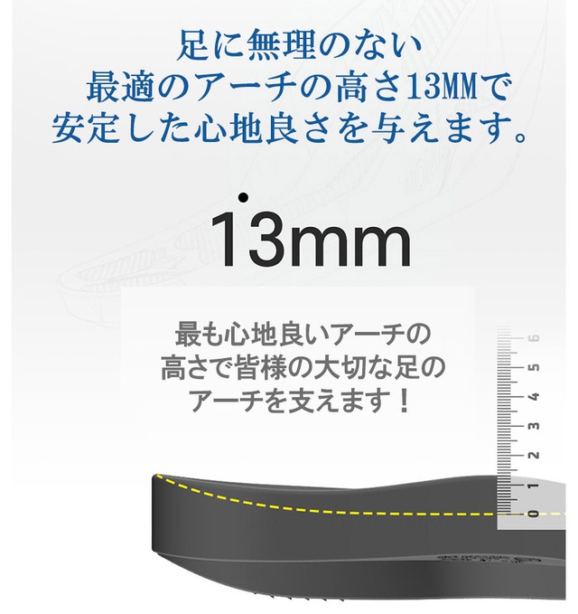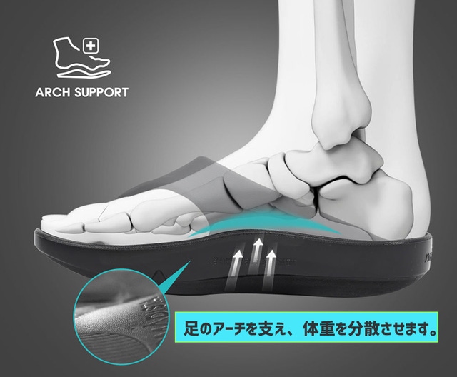 - アーチサポート設計 | 足のアーチを支え、体重を分散されるように設計しました。