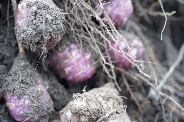 ▲北海道産の大きなキクイモが毎年安定的に収穫できるよう努力していきます