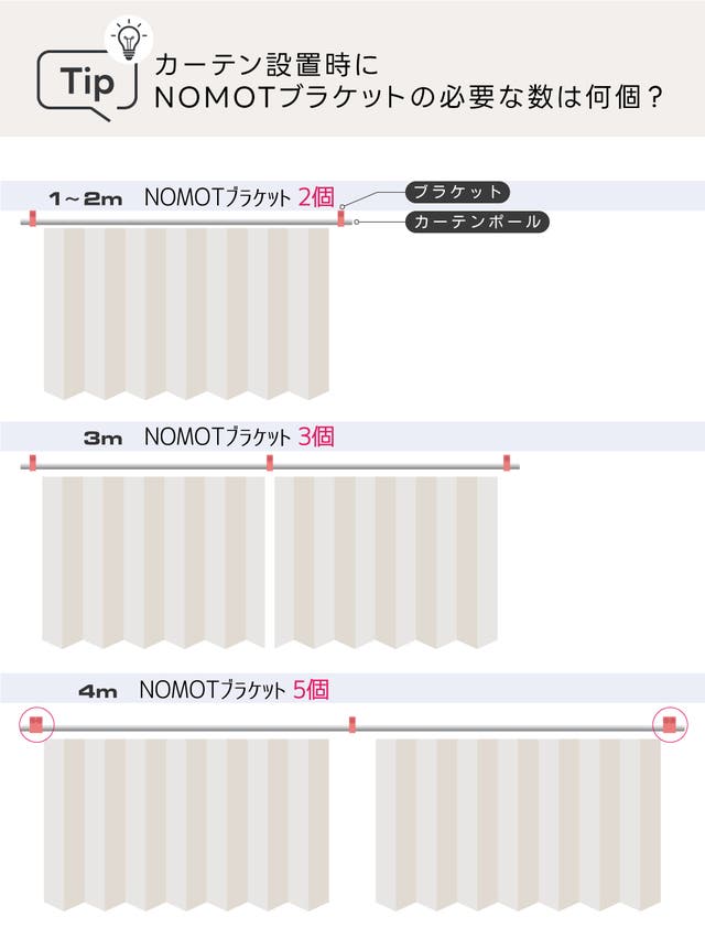 セルフ設置が大変なカーテンレールの代わりにNOMOTブラケットで簡単に取り付けしましょう。