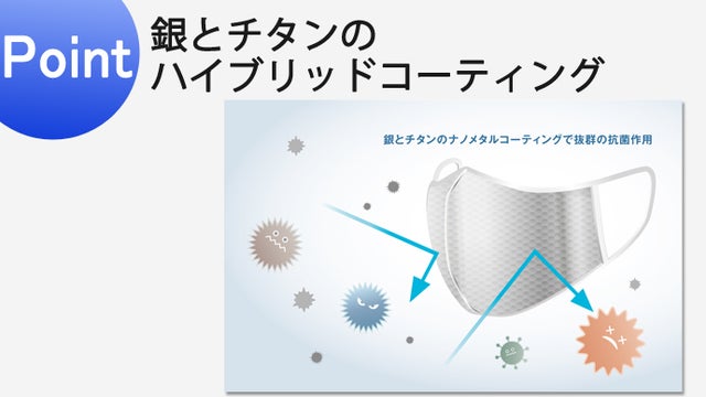 銀の持つ強力な抗菌性と、銀の酸化を防ぐチタンのダブルコーティングにより、抜群の抗菌活性値をキープ出来る素材となっております。