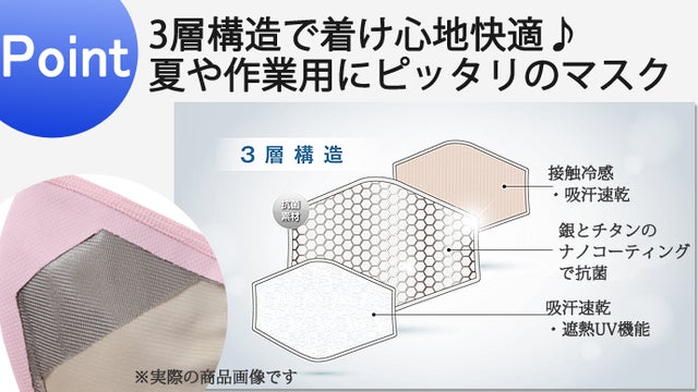 - 息苦しくない夏用マスク!通気性・吸水性抜群の素材と接触冷感素材を使用