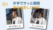 - 急な日差しを感じたら取り出してサッと広げるだけ!顔に当たる日光を遮断、日傘の代わりに最適です!