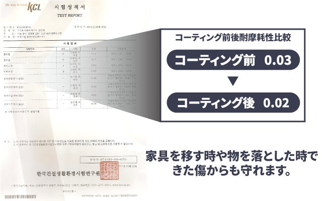 目に見えないほど小さいシリコン(すべての床タイプ)、凹凸(タイル·石材床タイプ)が床と強く結合するやり方でコーティング! 様々な生活傷から保護します。