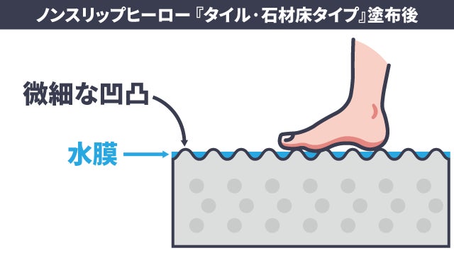 『タイル·石材床タイプ』は目に見えない微細な凹凸を作り出すため、水膜が形成されたタイル、大理石、石材の床でも摩擦力を与え、滑らないようにサポートします!