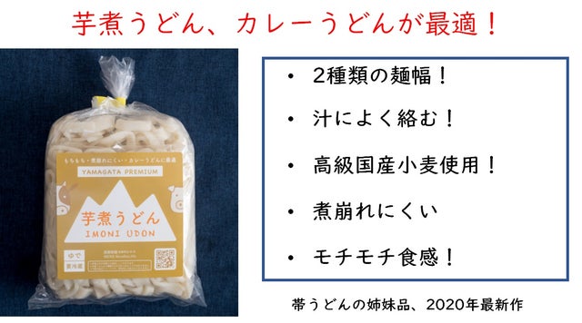山形の心の味芋煮、秋の風物詩芋煮会で「最後の〆」をご馳走にするために開発されたたため、カレーうどん最適です。