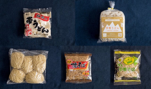原材料:小麦粉・食塩・クチナシ黄色素・かんすい・卵白・小麦蛋白・植物性蛋白・酒精・プロピレングリコール / 内容量:130gx5食