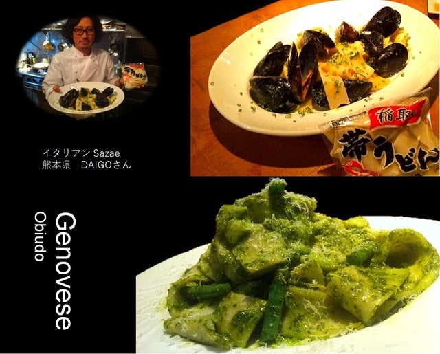 熊本の人気イタリアンSazaeのシェフ、 DAIGOさんに帯うどんを本格イタリアンにアレンジをしてもらいました。