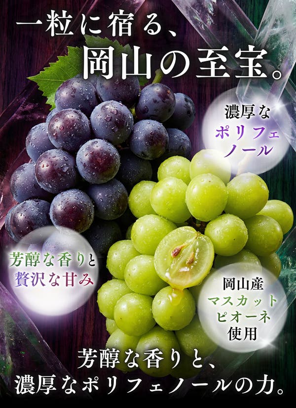 各フレーバー: 岡山県産シャインマスカット端材、または岡山県産ピオーネ端材
