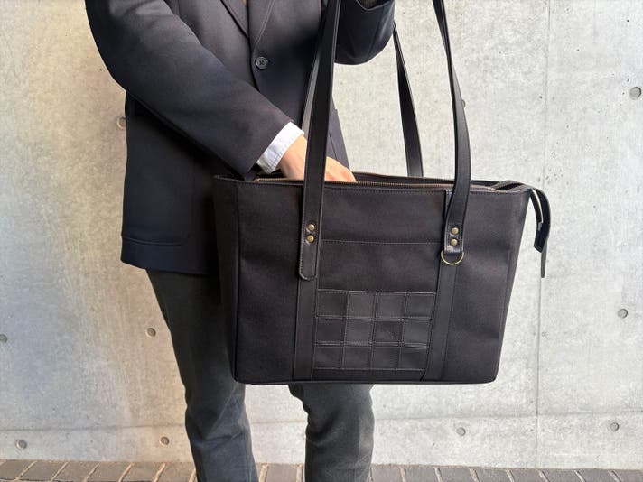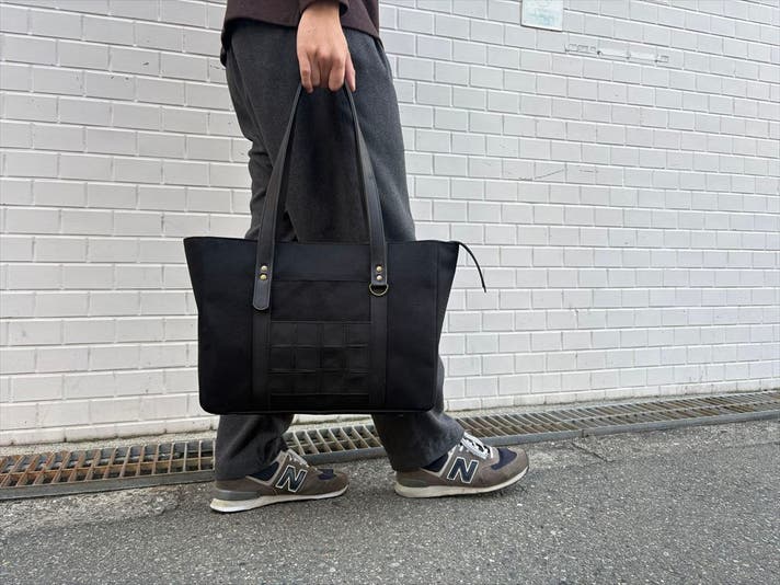 野良クロは、どこでも浮かない“黒の統一感”を軸に設計したトートです。