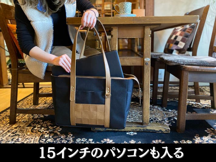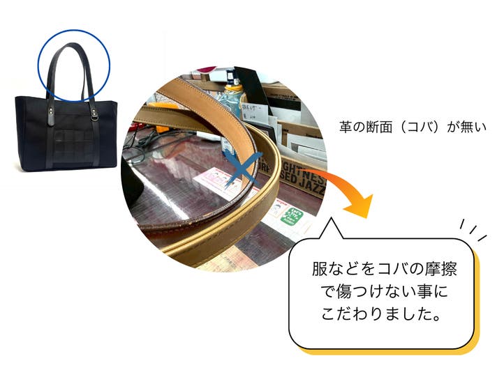 革のトートバックにすると重たく堅苦しいイメージになってしまう・・