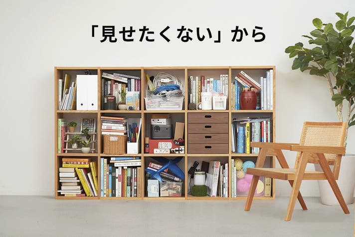 - 「隠す、見せる 」:棚のごちゃごちゃをスマートに隠しながら、インテリアとして魅せる。