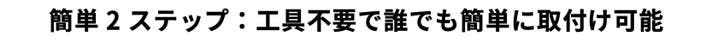 ①「アタッチメント」を本棚に取り付ける。コの字のクリップ形状のため釘やテープ、工具なども不要で誰でも簡単に取付けることができます。棚を傷つけません。