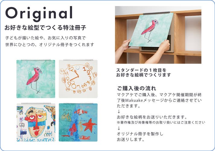 ※ご購入いただいたあとにお好きな絵柄をお送りいただくために、マクアケ開催期間が終了後にMakuakeメッセージからご連絡させていただきます。