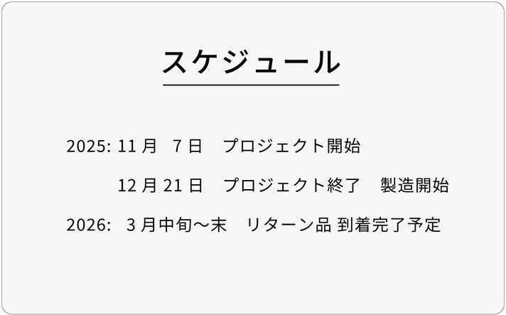 このプロジェクトはAll in型です。目標金額の達成に関わらず、プロジェクト終了日の2025年12月21日までに支払いを完了した時点で購入が成立します。