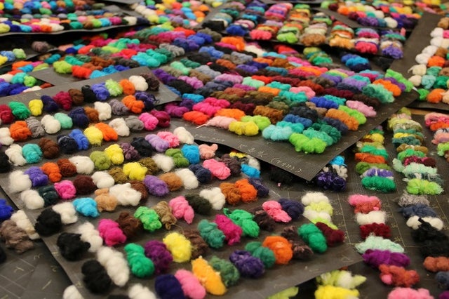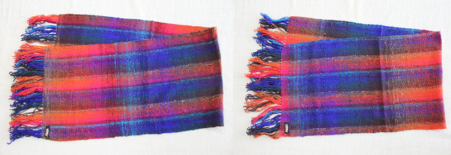 - 同じ色の毛糸を使って織っているが、配色が微妙に異なるので全てが1点物