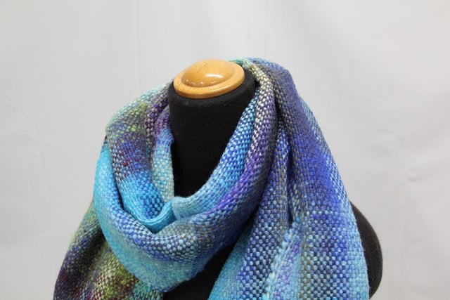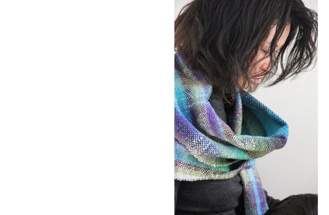 横糸には、スライバー(撚りの入っていない糸)を使っています。また、毛糸の風合いを失わないように、手織りで柔らかく織ってあります。そのため、アクセサリーや爪による糸のひっかけにご注意ください。