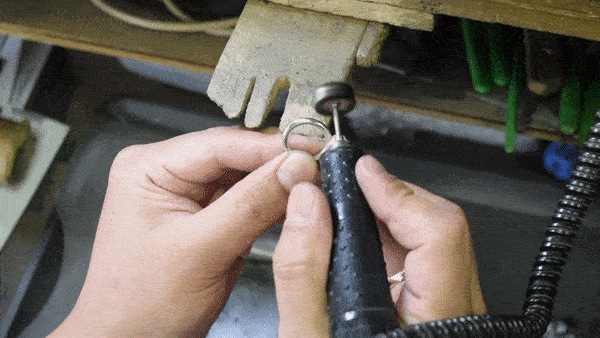 リング形になったものを芯金棒と金槌を使って成形していきます。