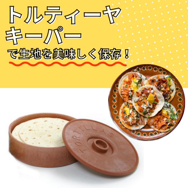 また作りたてのトルティーヤを、トルティーヤキーパーに入れることで保温と同時に蒸らすことができ、しっとりとした生地に仕上げることもできます。