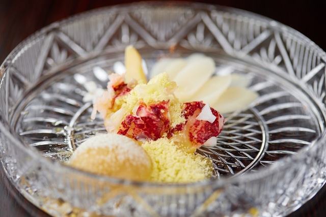 高級食材として知られているフランスはブルターニュ産の「オマールブルー」は、多くの美食家を魅了。その名の通り、綺麗な青色の殻が特徴で「青い宝石」と呼ばれています。当店ではフランスから生きたまま空輸されたオマールブルーが食材の定番としてコースに登場致します。