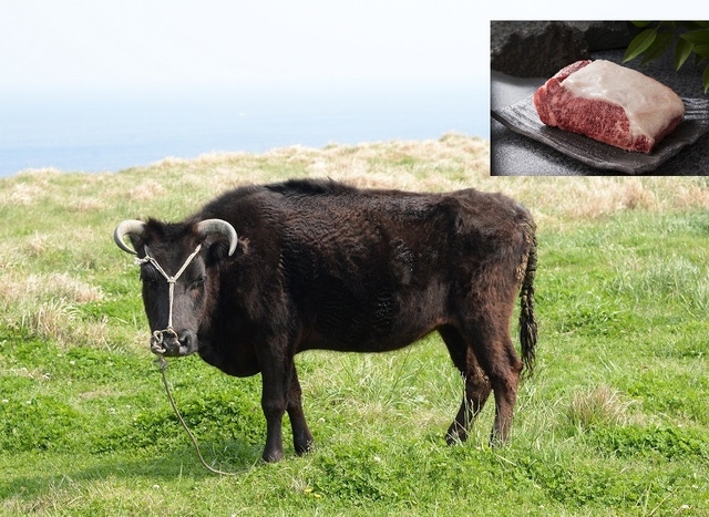 山口県の「見島牛」と「見蘭牛」は、当店が自信をもって提供する食材の1つと言えます。昭和3年に国の天然記念物に指定された「見島牛」。日本の黒毛和牛の原点ともいえるこの見島牛は、山口県最北端の離島「見島」で今も大切に保護され育てられています。自然に増えた分だけ・・・年に10数頭しか出回らず、まさに「幻の牛」。東京でもなかなか口にすることが出来ない牛としてその名は広く知られております。シェ松尾松濤レストラン料理長時代にお取り引きをさせていただいたことがご縁で、当店ではこの見島牛の血を引く貴重な「見蘭牛」を通常提供しており、また年数回ではありますが「見島牛」も入荷&アップグレード料金にて提供させて頂いております。
