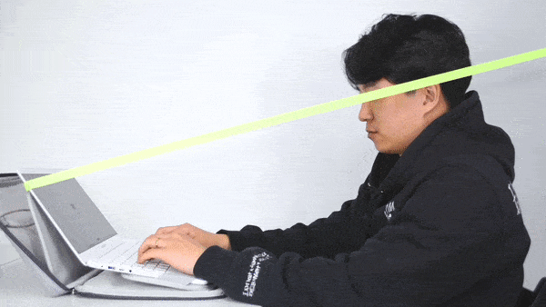私たちの会社では、全職員が常にノートパソコンを持ち歩いています。いつでもどこでも、支障なく業務をこなすために、ノートパソコンを命綱のように抱えながら、一日7~8時間以上ノートパソコンを活用しているのです。そんな職員たちに共通した悩みがまさに、亀首でした。より手軽に、健康的に仕事をする方法はないものか?小さな悩みから始まり作られたこのポーチは、現在全職員にとって、かけがえのないポーチになりました。
