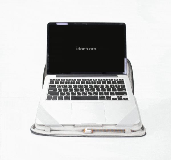 皆様に、大事なノートパソコンを他の人よりもちょっとだけセンス良く使ってほしい、より効率的に使ってほしいと思い、持ち運ぶ際に必ず使うであろうノートパソコンポーチにスタンドを取り付け、兼用できるようにしました。
