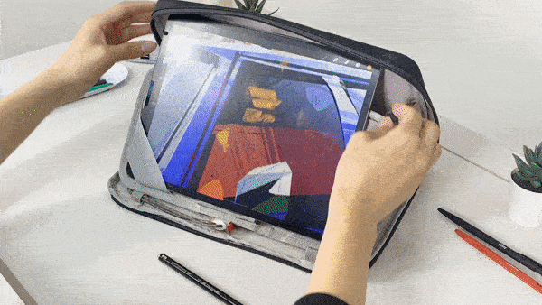 iPad13インチが入るほどのスペースがあり、ファイル / タブレット / 本 / キーボード などを収納してもOK!