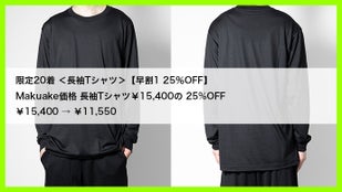 Makuake価格 長袖Tシャツ¥15,400の 25%OFF