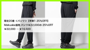 Makuake価格 パンツ¥22,000の 25%OFF