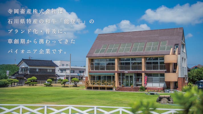 石川県特産の和牛「能登牛」のブランド化・普及に、草創期から携わってきたパイオニア企業です。1995年の「能登牛銘柄推進協議会」設立、2007年の商標登録に至るまで、地域関係者とともにブランドの基盤づくりに貢献しました。こうした産業振興の取り組みが評価され、代表の寺岡一夫は2018年に叙位叙勲を受章しています。