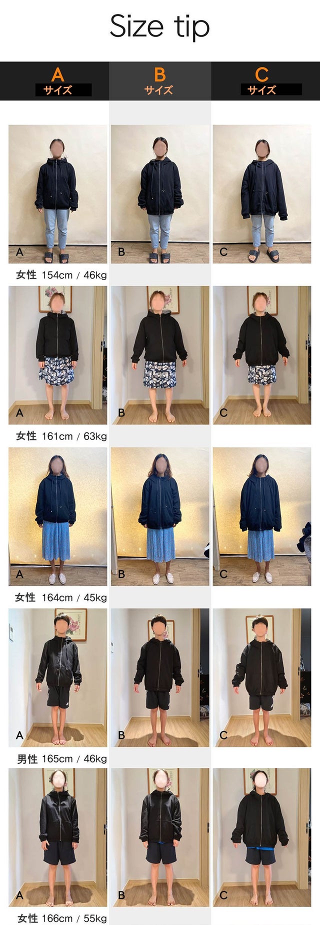 ■ サイズ オプション : A(S)、 B(M~L)、 C(XL~2XL)