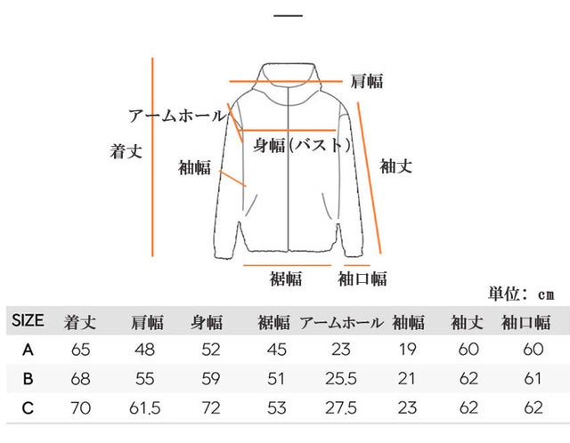 A サイズ : S / B サイズ : M~L / C サイズ : XL~2XL